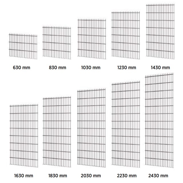 Průměr drátů: svislé 5 mm, zdvojené vodorovné 2 x 6 mm